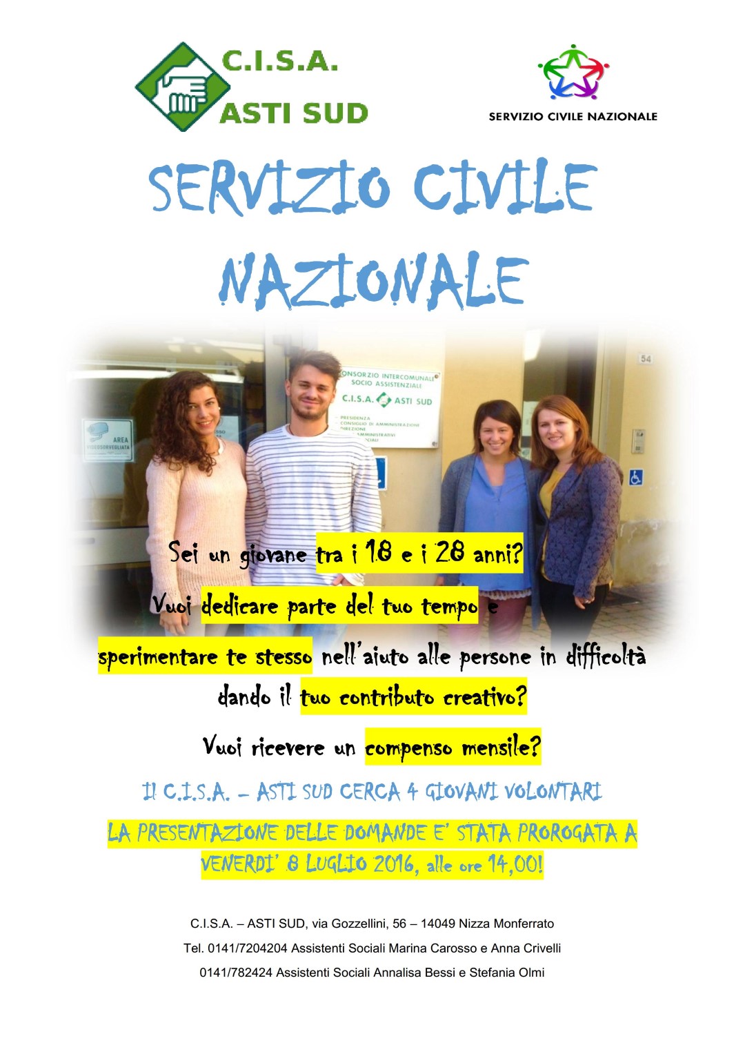 IL C.I.S.A. - ASTI SUD SELEZIONA n. 4 VOLONTARI DI SERVIZIO CIVILE UNIVERSALE