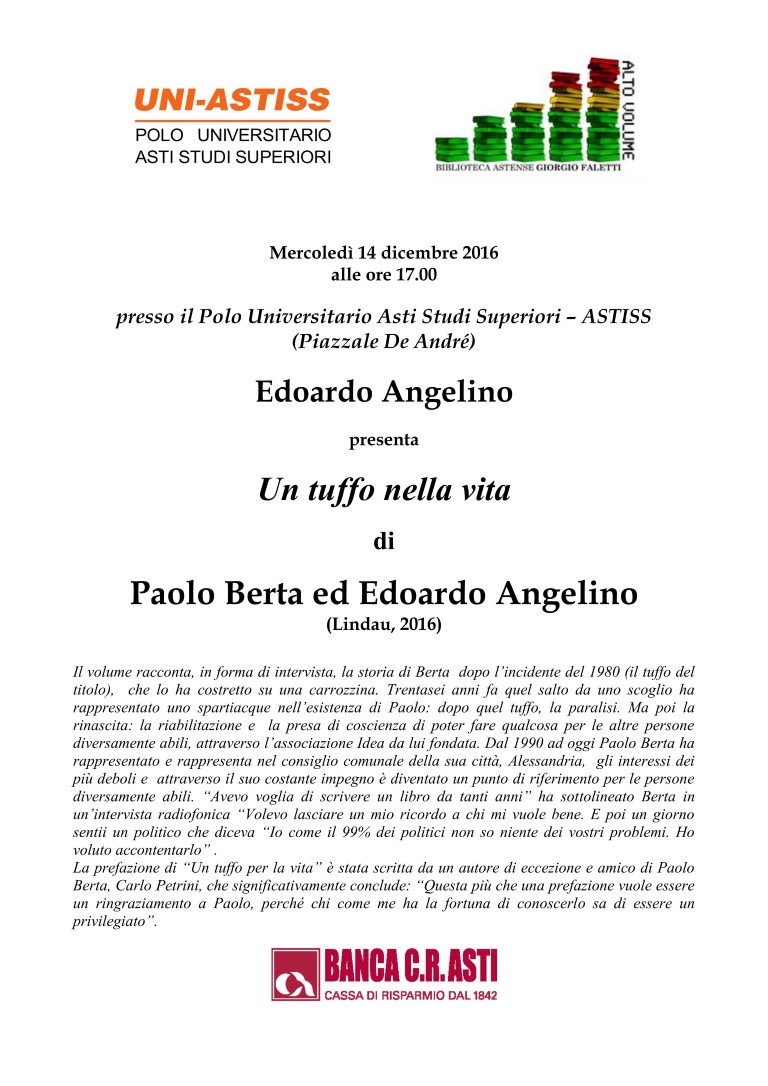 Mercoledì 14 dicembre 2016 alle ore 17.00 presso il Polo Universitario Asti Studi Superiori – ASTISS (Piazzale De André)