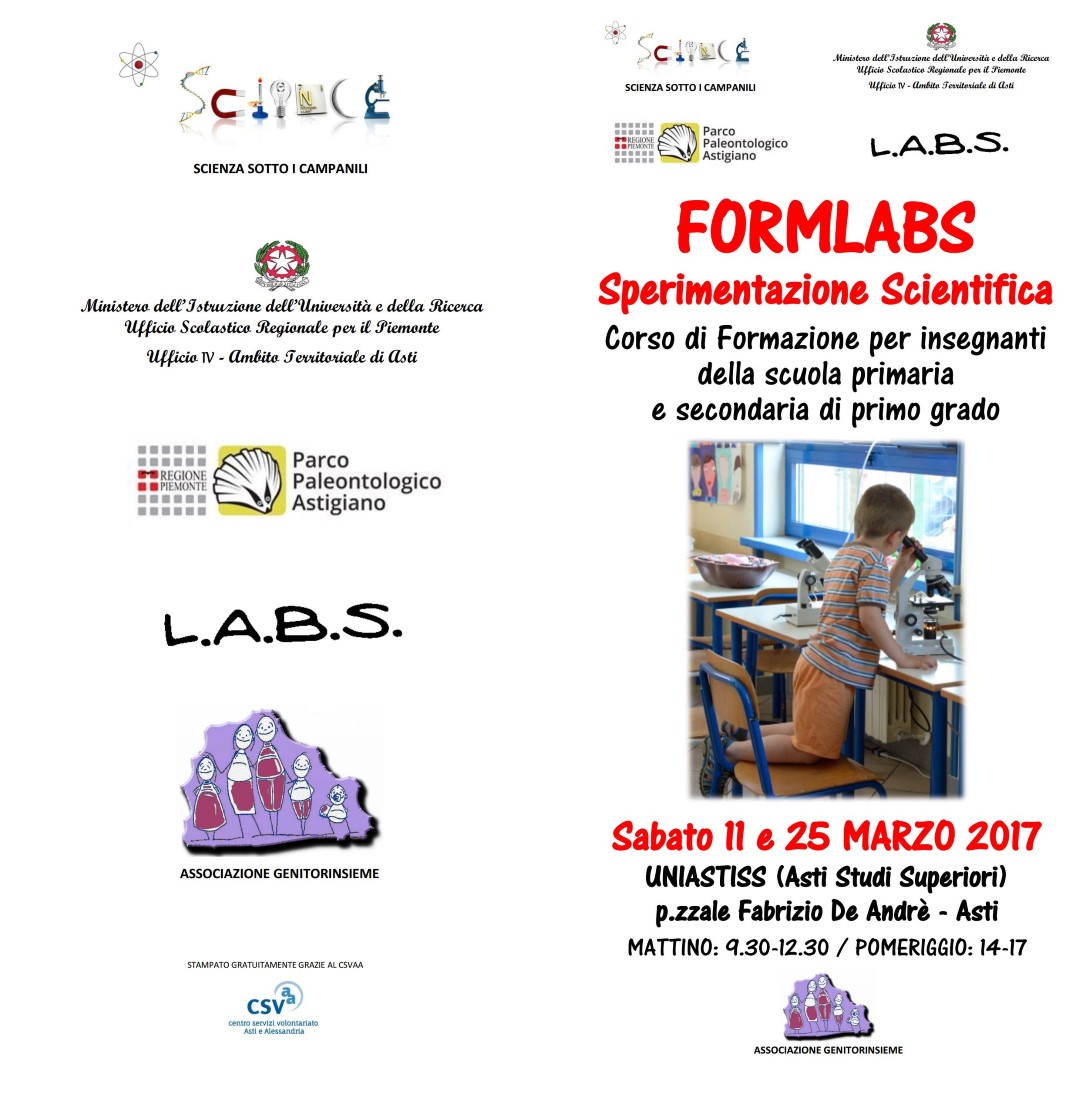 una rapida nota di aggiornamento circa i corsi di formazione legati al progetto LABS (Laboratori Astigiani per bambini scienziati) di sabato 11 e 25 marzo.