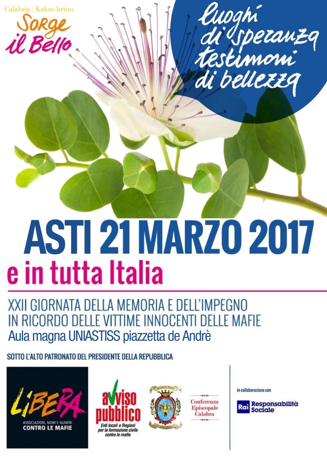 In Piemonte l’evento principale si terrà a Verbania. Il Coordinamento Provinciale di Libera Asti, con il contributo dell’ASP ha organizzato due pullman per permettere alle scuole ed alla cittadinanza di partecipare a questa manifestazione dando un segno concreto dell’impegno di Asti contro le mafie.