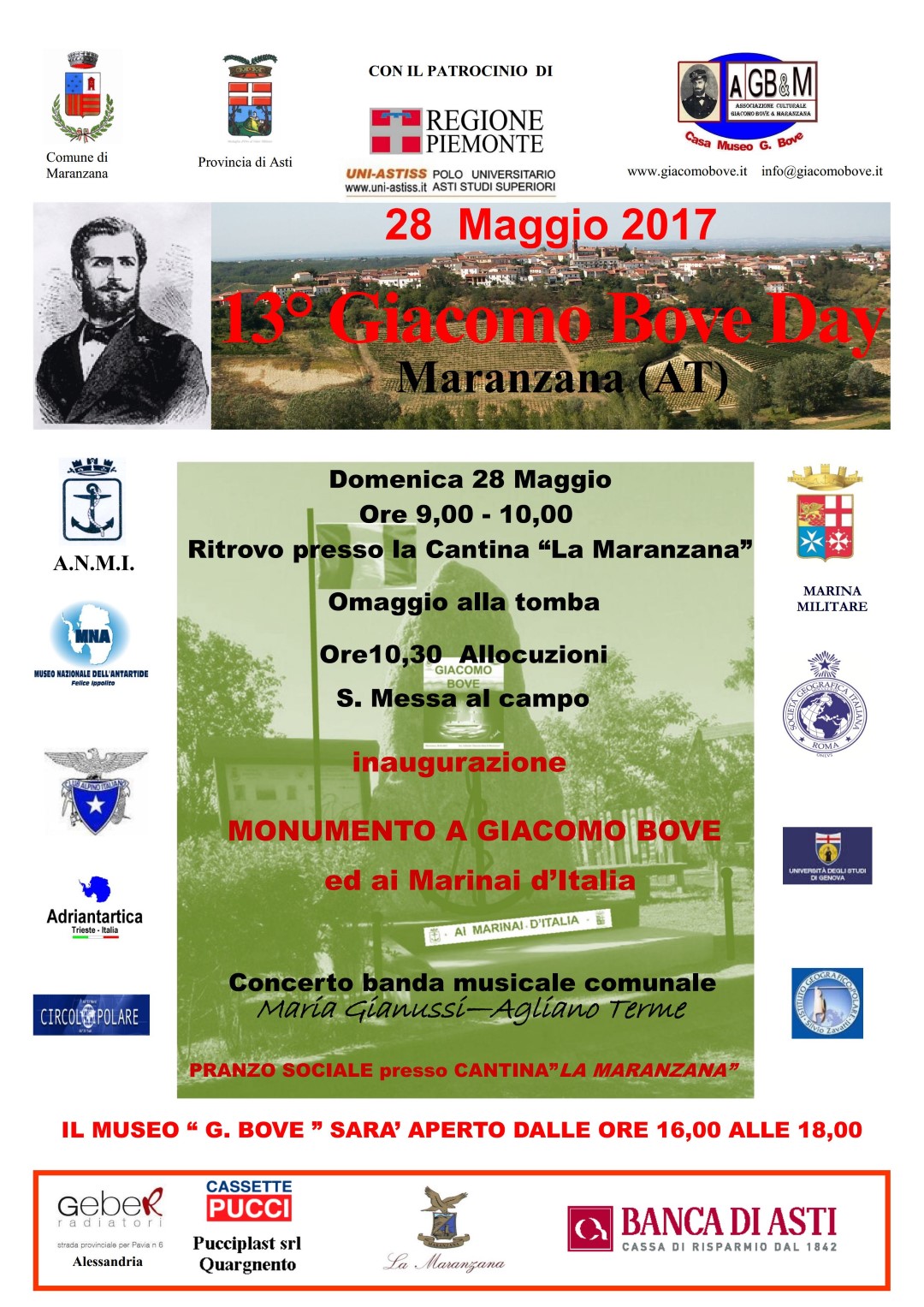 INAUGURAZIONE MONUMENTO ALL’ESPLORATORE GIACOMO BOVE ed ai MARINAI D’ITALIA
